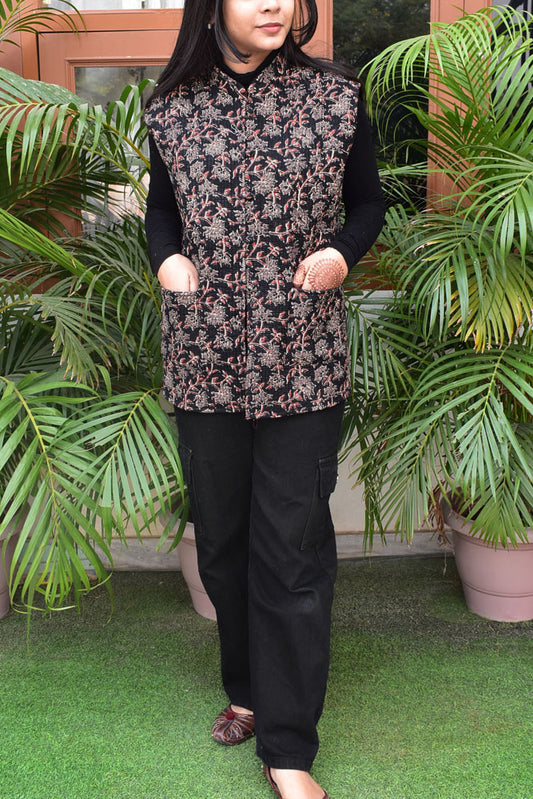 Block Print Quilted Reversible cotton jacket - Size - 44