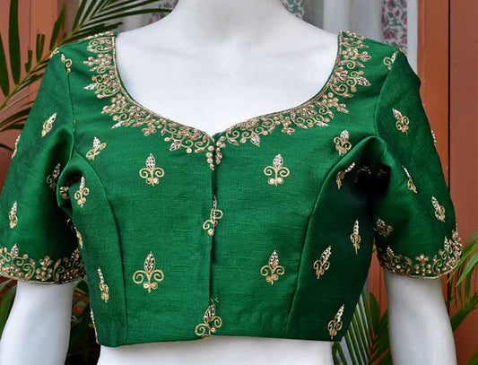 Hand Embroidered Zardozi, Dabka & Sequin work Blouse on Art Silk Fabric - Size 40, 42 ( has margins for Size Extension))
