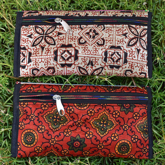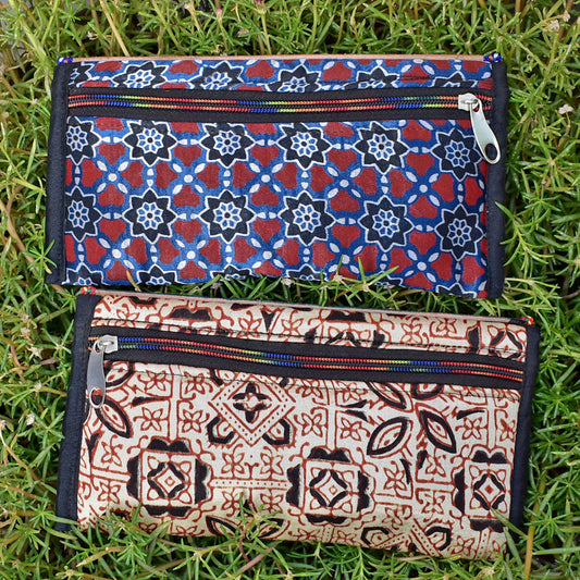 Set of 2 - Handcrafted Kutch Leather Punch work &Ajrakh Mashroo wallet/purse