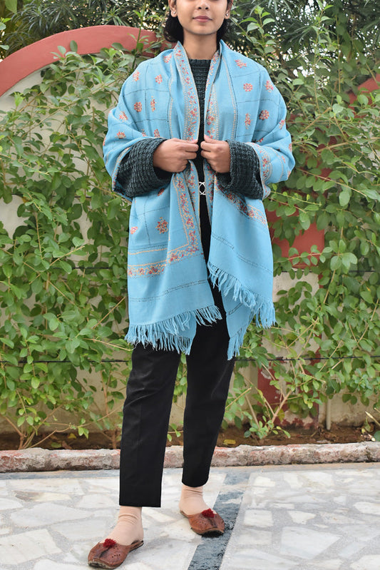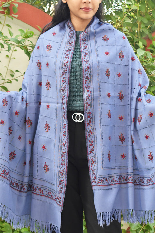 Intricate Kashmiri Sozni Hand Embroidery & Cutwork Work Woolen StoleStole