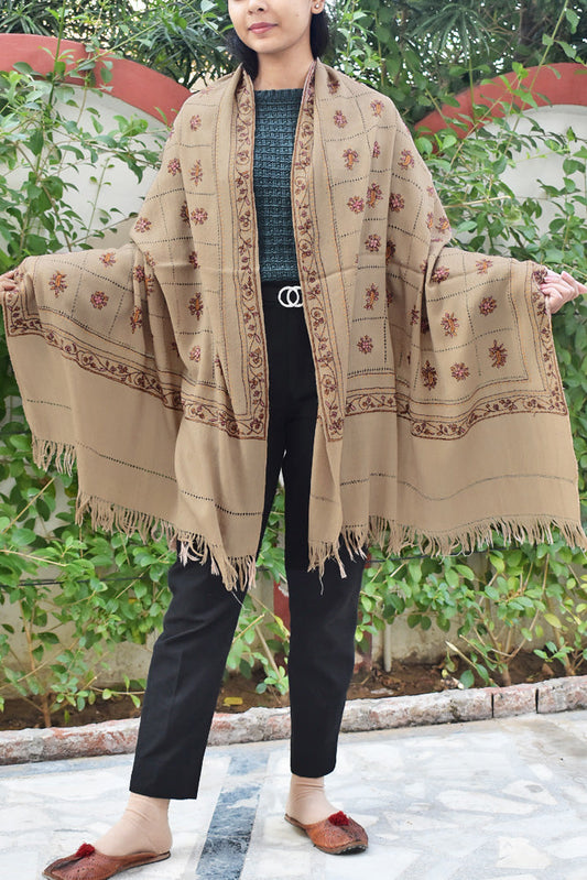 Intricate Kashmiri Sozni Hand Embroidery & Cutwork Work Woolen Stole