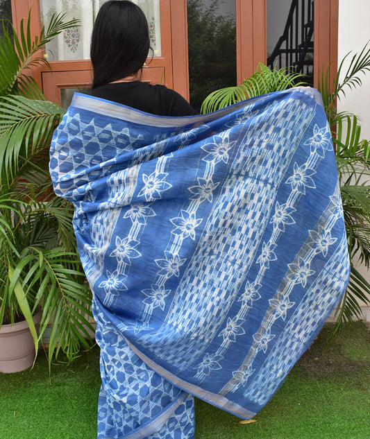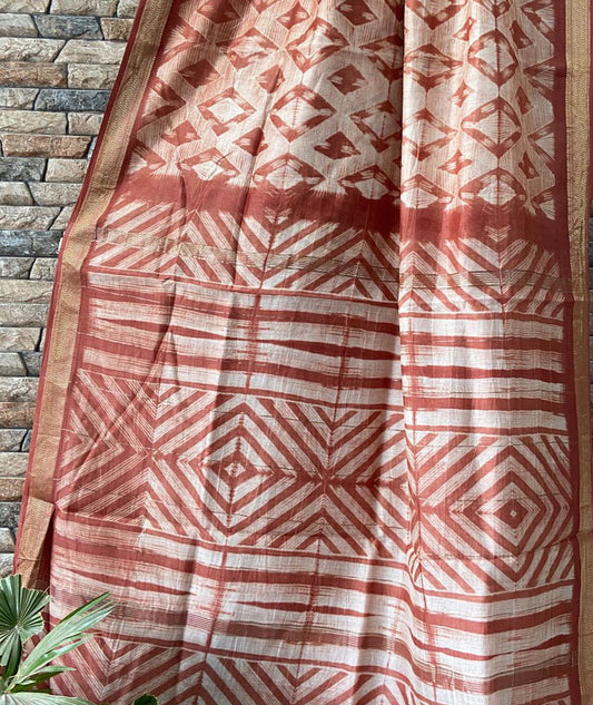 Handcrafted Shibori Tie-Dye Maheshwari Saree with Zari Border