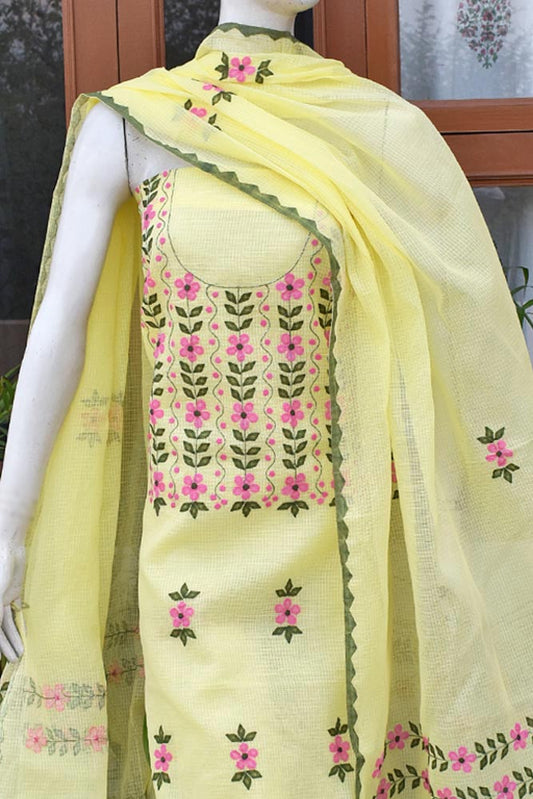 Elegant Kota Unstitched Kurta & Dupatta set with Hand done Phool patti work