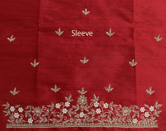 Intricate & Detailed Hand Zardozi, Dabka, Aari , Pearl & Sequin work Blouse Fabric on Art Silk Fabric