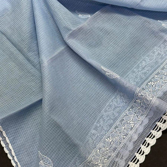 Handcrafted Kota Cotton Dupatta with Chikankari embroidery & crochet borders