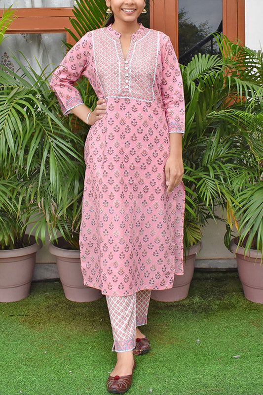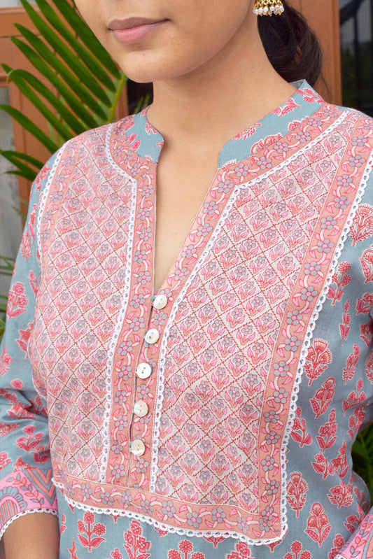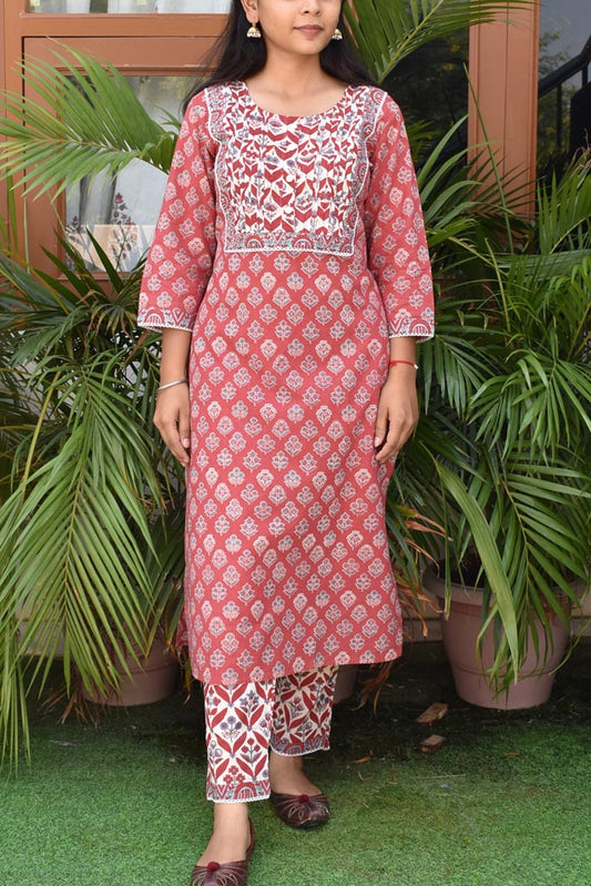 Soft Cotton Kurta and pant set with Embroidery & Lace details -Size 36, 38