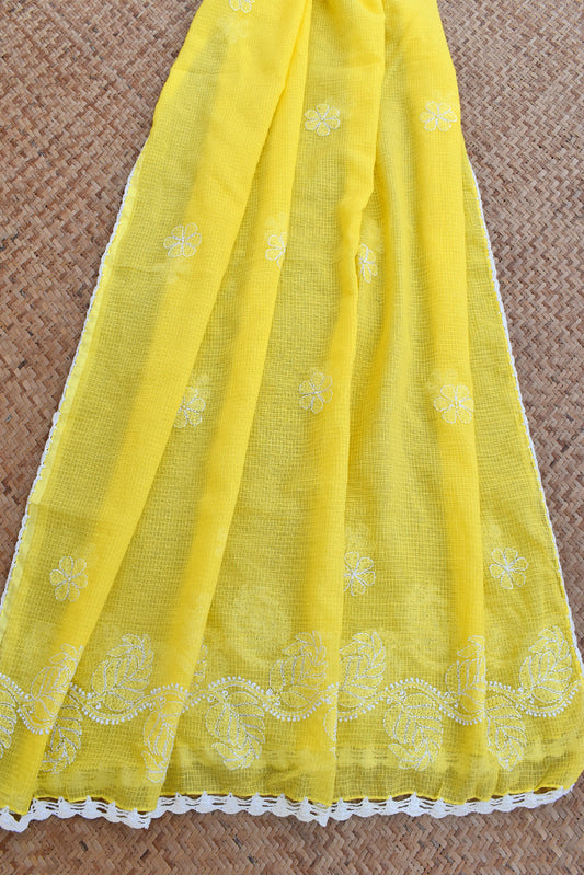 Handcrafted Kota Cotton Dupatta with heavy Chikankari embroidery & crochet borders