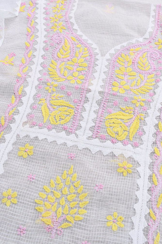 Elegant Milky White Kota Kurta & Dupatta Set with Applique & Lucknowi Hand Chikankari embroidery