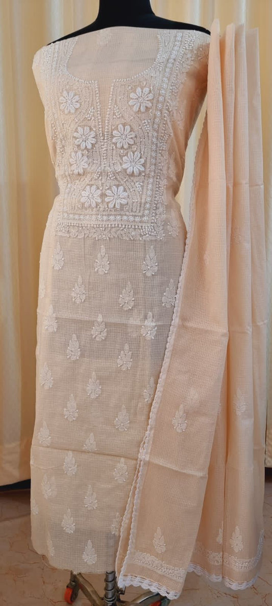 Elegant Kota Doria Kurta & Dupatta Set with Lucknowi Hand Chikankari embroidery