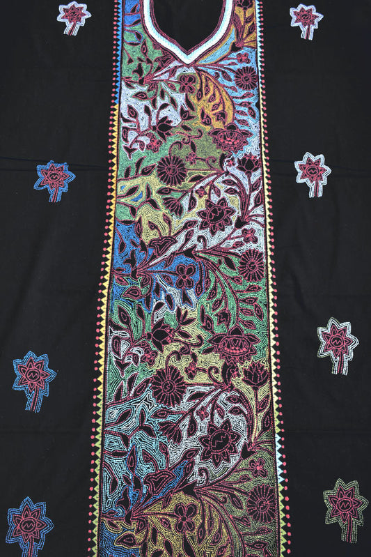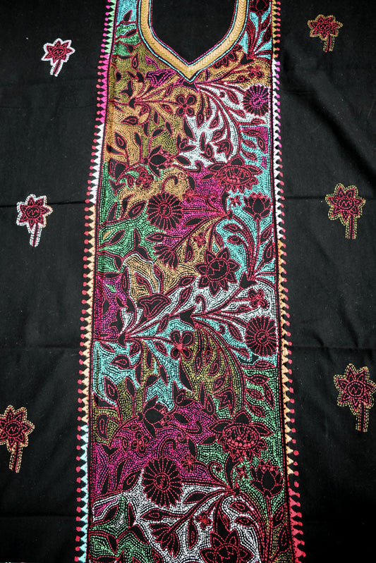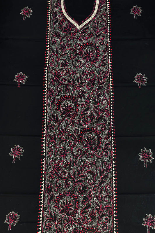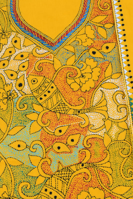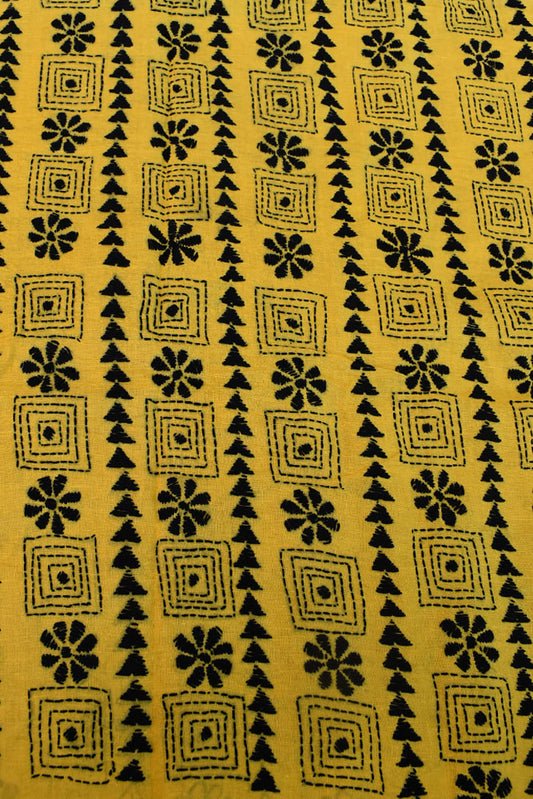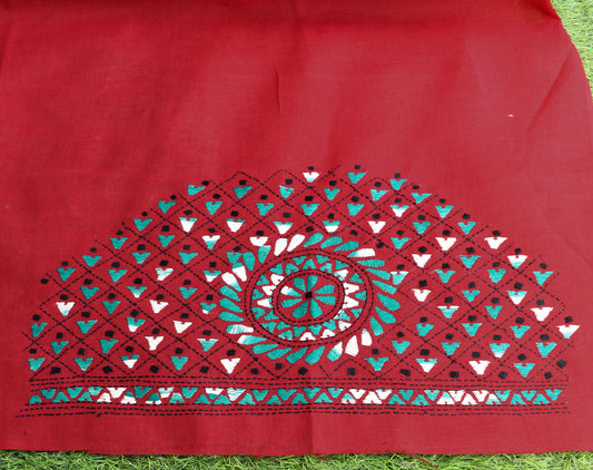Hand Embroidered Nakshi Kantha work cotton fabric - (Length 2.8 mtrs, )