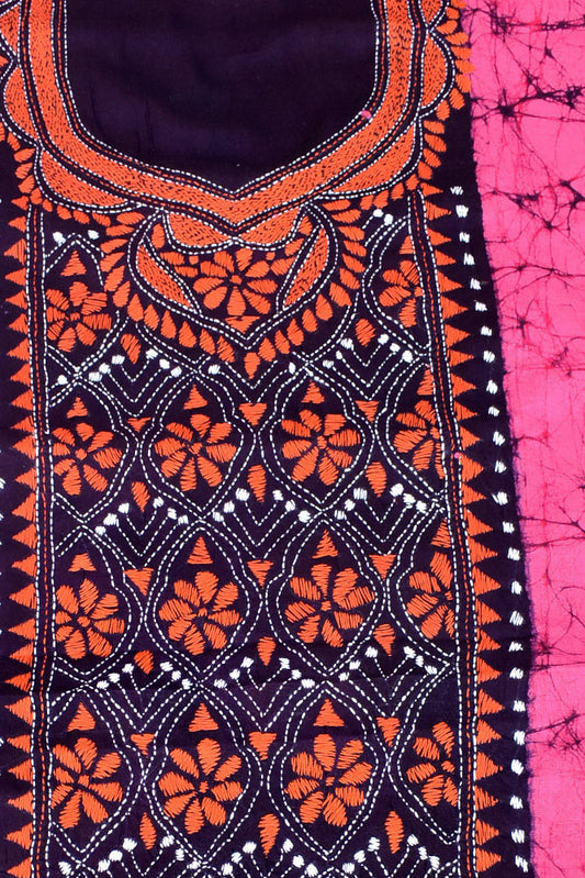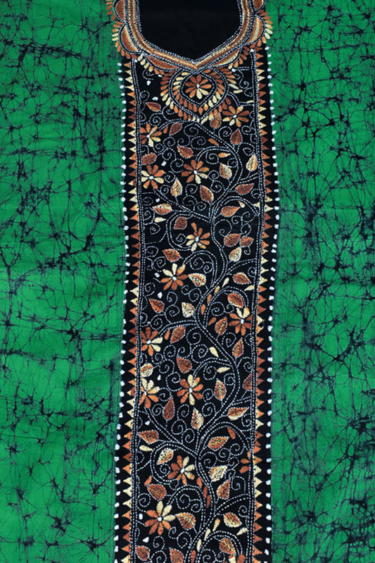 Hand crafted Batik & Kantha work cotton fabric - (Length 2.5 mtrs, )