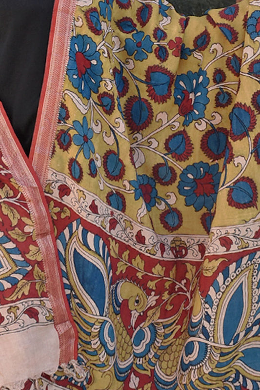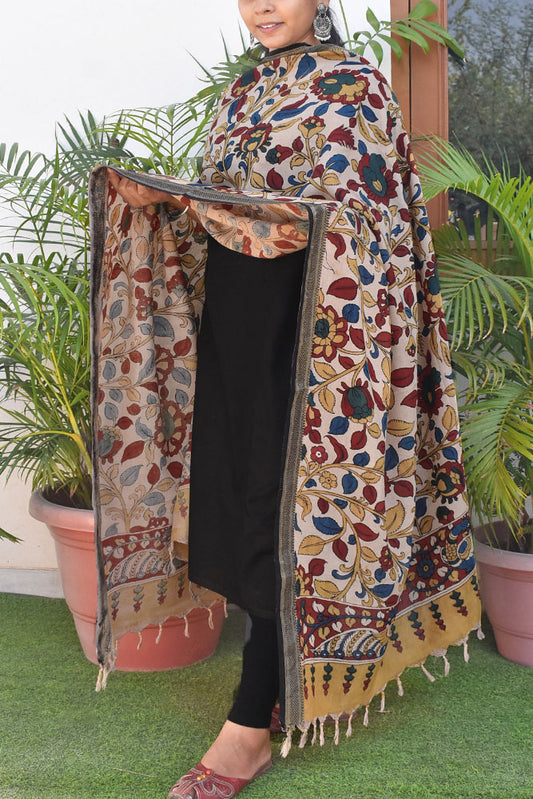 Bhavya : Beautiful Bangalore Cotton Silk Hand Painted Kalamkari Dupatta