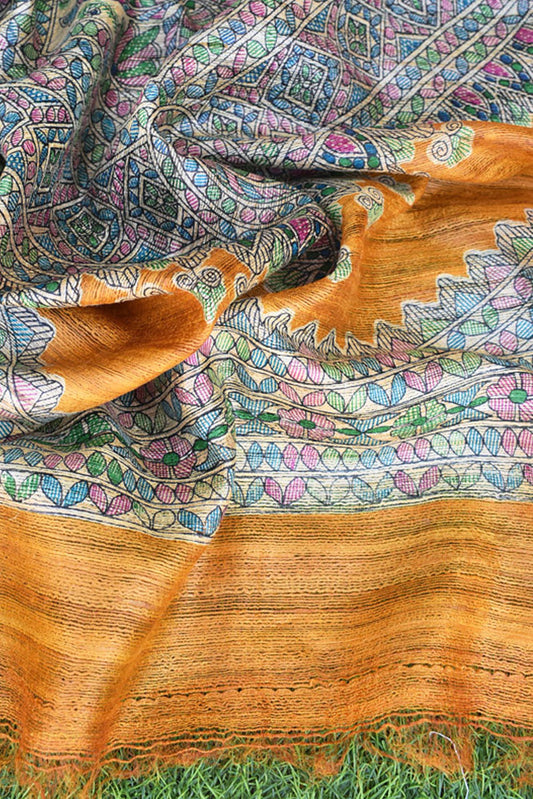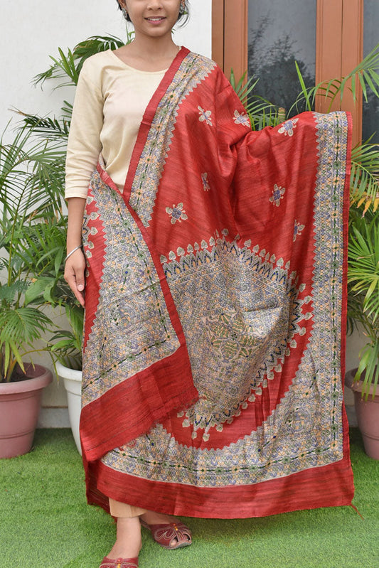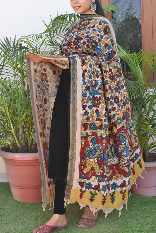 Mithila : Beautiful Bangalore Cotton Silk Hand Painted Kalamkari Dupatta