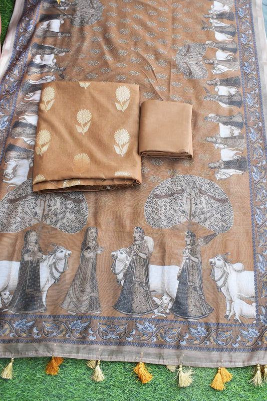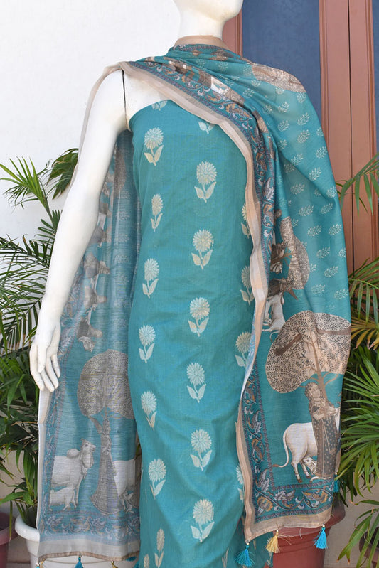 Beautiful Silk cotton Suit with Miniature Art Digital print dupatta