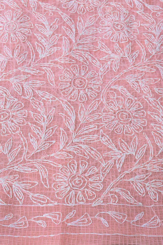 Hand Embroidered Chikankari Tepchi work Kota Doria fabric - (2.7 - 2.8 mtrs )