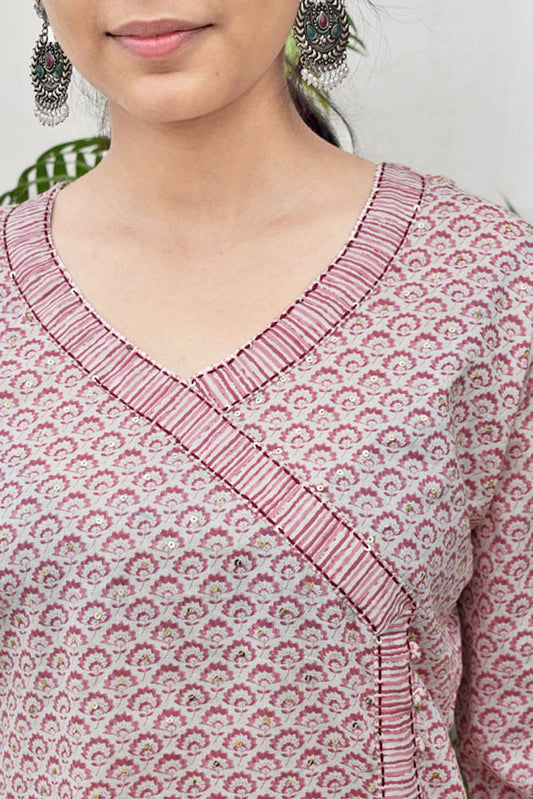 Beautiful Cotton Kurta with Tagai & Aari work & Embroidered Sequins Size - 36, 38, 40, 42, 44