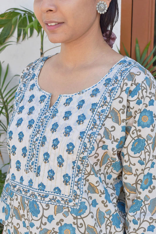 Beautiful Cotton Kurta with Tagai & Aari work & Embroidered Sequins Size - 38, 40, 42