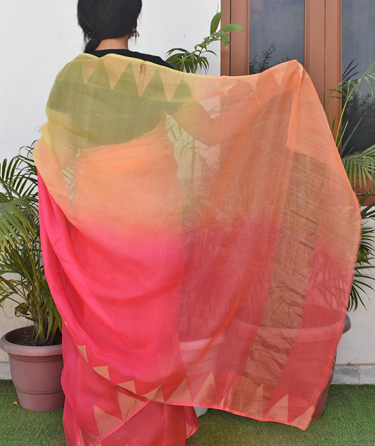 Beautiful Multi Dyed Kota Silk Saree with Zari border