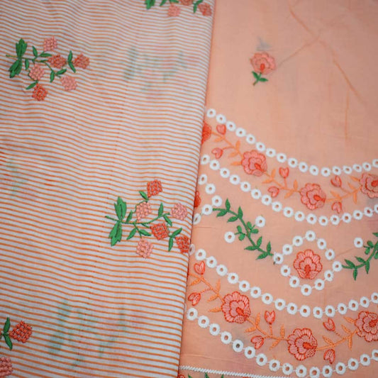 Embroidered Cotton Fabric combo ( set of 2 cut pcs)