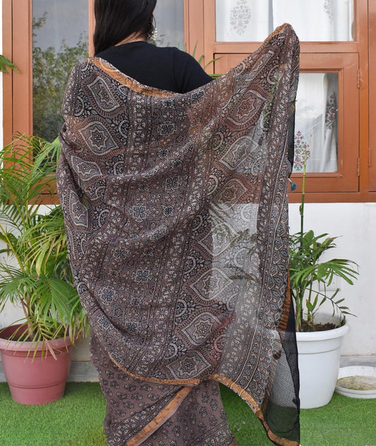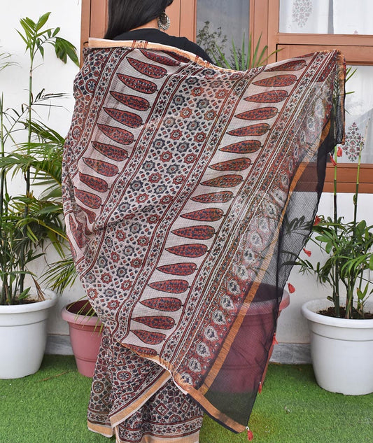 Hand Block Print Kutch Ajrakh Kota Cotton Doria Saree