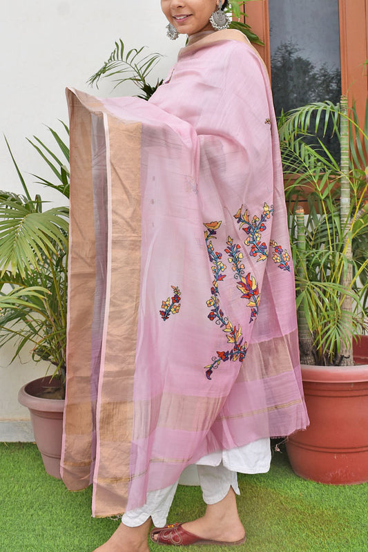 Elegant Pure Maheshwari Silk Cotton Dupatta with Kashmiri Hand Embroidery