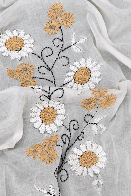 Beautiful Soft Cotton Voile Stole with Kantha work & hand embroidery & tassels