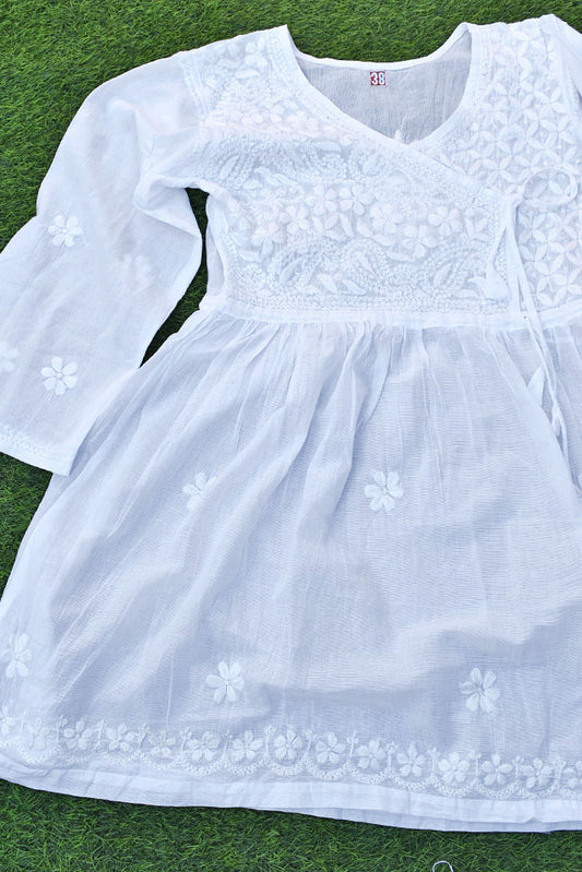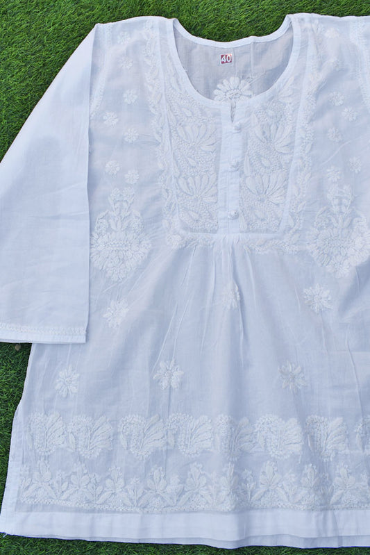 Elegant Soft Mul Cotton Short Top / Kurta with Hand Chikankari work - Size 36