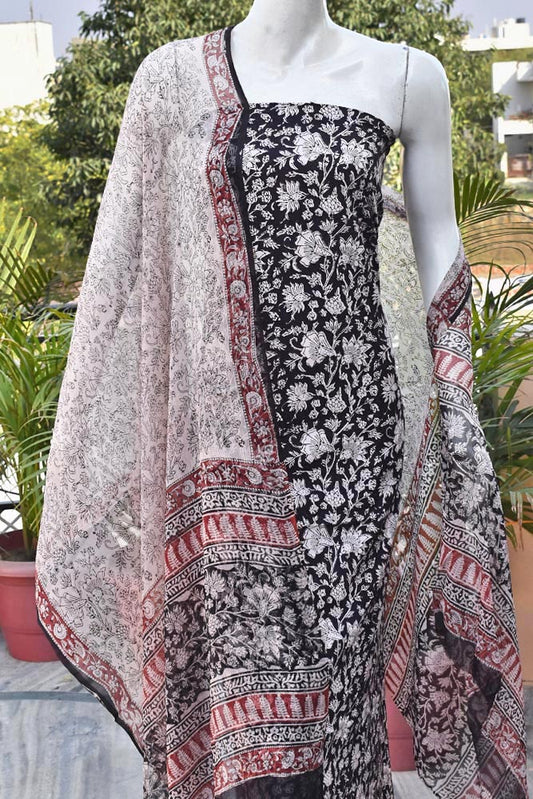 Beautiful Hand Block Printed Bagru Modal Suit with Chiffon dupatta