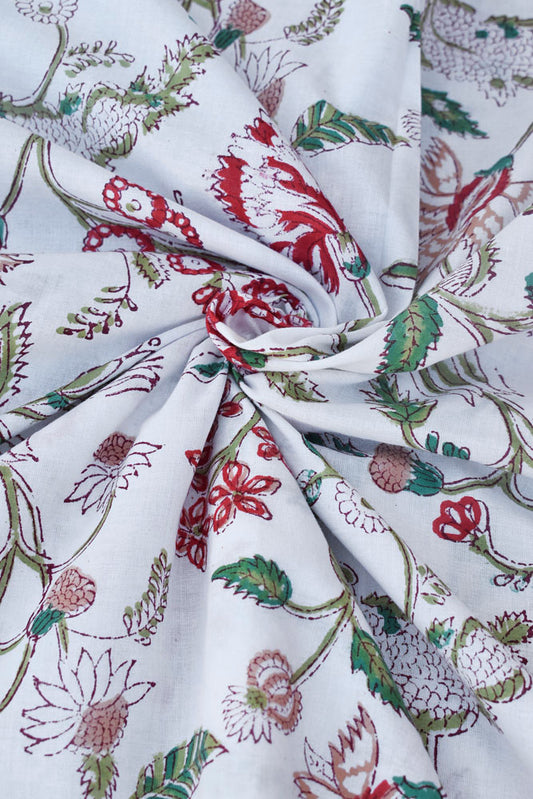 Beautiful Sanganer Block Printed Running Cotton Fabric ( 2.5 mtrs cut)