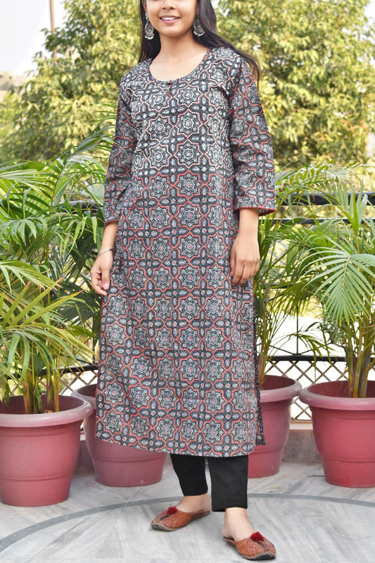 Machalipatnam Kalamkari Hand Block Printed Cotton Short Kurta with sequins on yoke - Size - 44