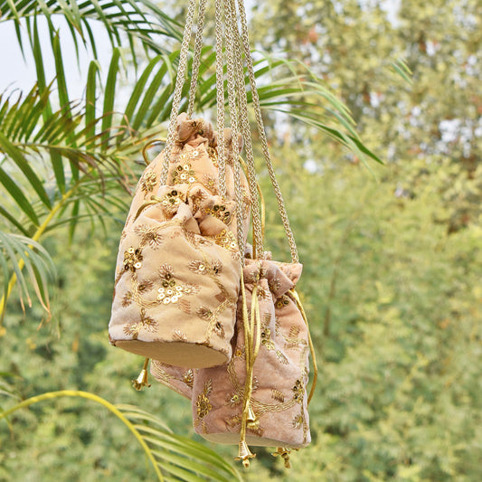 Embroidered Velvet Potlis for gifting - Set of 4 potlis