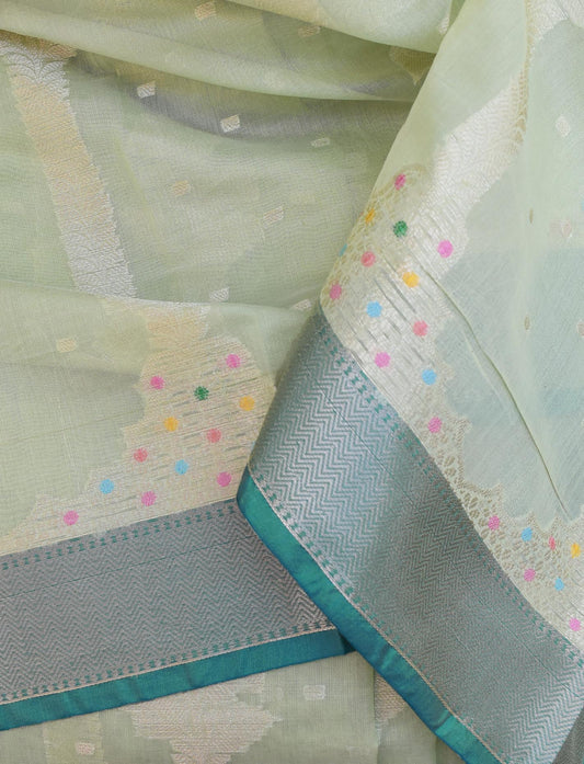 Beautiful woven cotton silk Banarasi saree with Meena booti