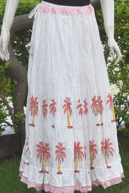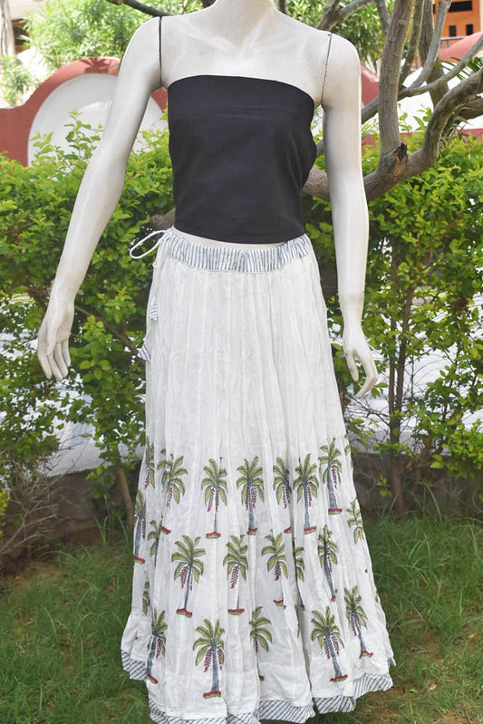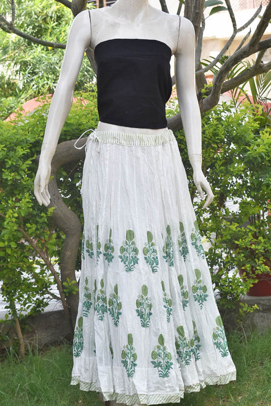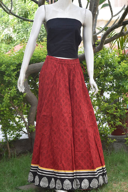 Beautiful Kalidar Block Printed Cotton Skirt with Stitched borders