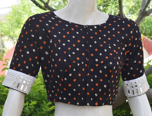 Handcrafted Bandhani Cotton Blouse with Kutch mirror work - size 38 ( can be adjusted)