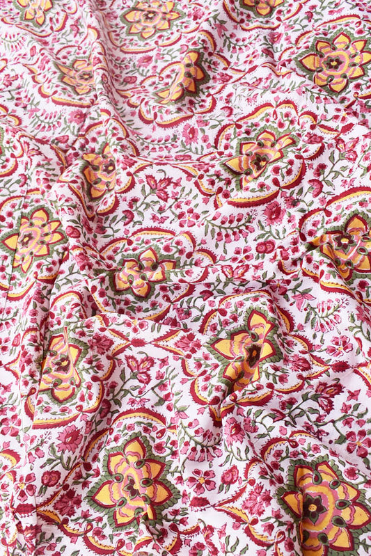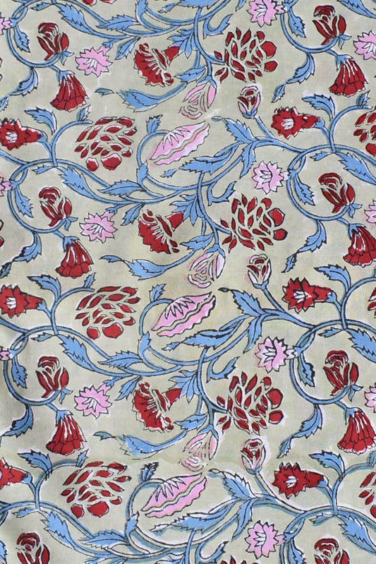Beautiful Block Printed Running Cotton Fabric ( 2.5 mtrs cut)