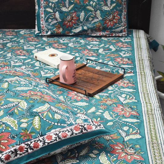 Shayan : Hand Block print King Size Cotton Double Bed sheet with pillow covers ( 90 by 108)