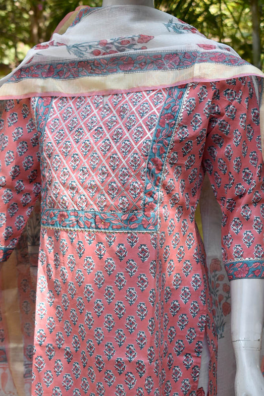 Hand Block Printed Cotton suit - Kurta , Dupatta & Pant