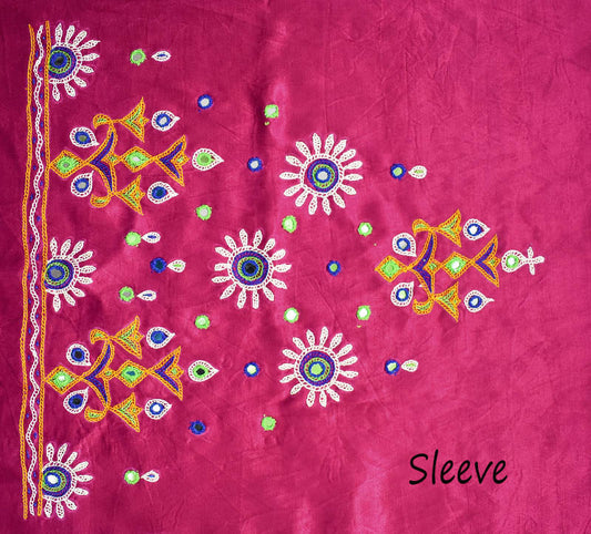 Beautiful Mashru Silk Blouse Fabric with Kutch Ahir Hand Embroidery