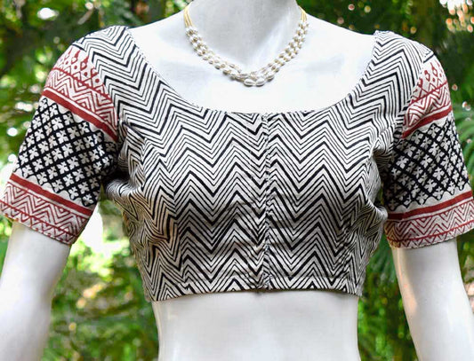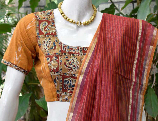 Block Printed Kalamkari & Ikkat Cotton Blouse