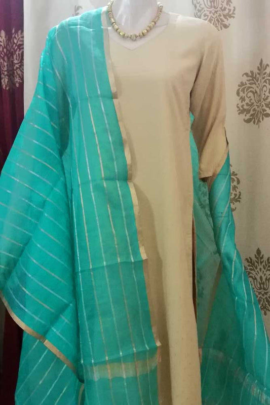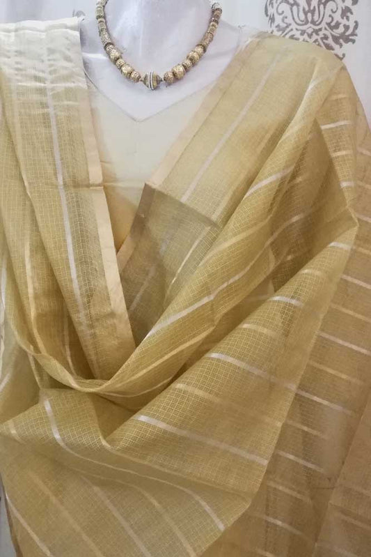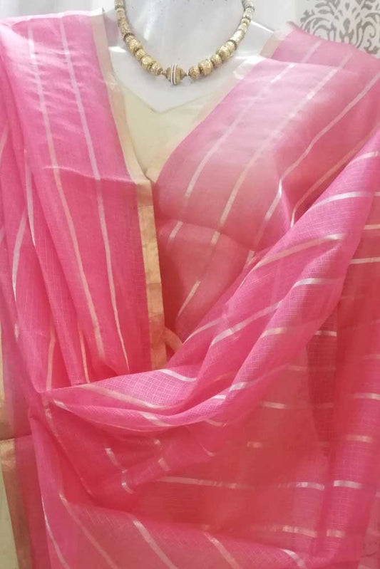 Kota silk dupatta with Zari border & woven stripes..