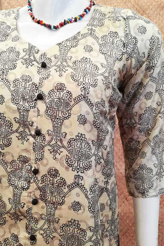 Elegant Block Printed Indigo Cotton Kurta - Size 40