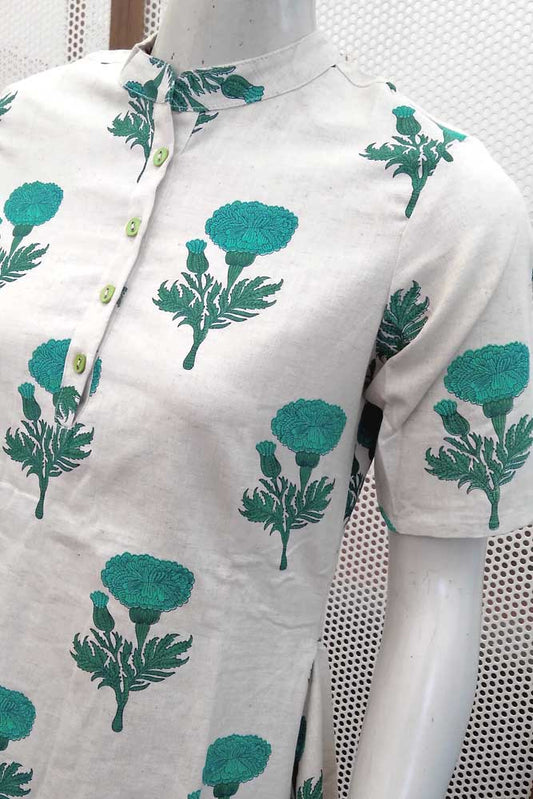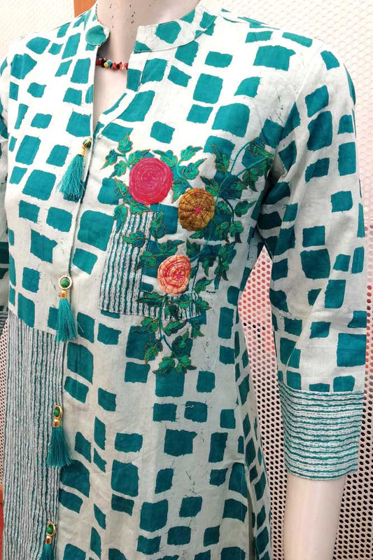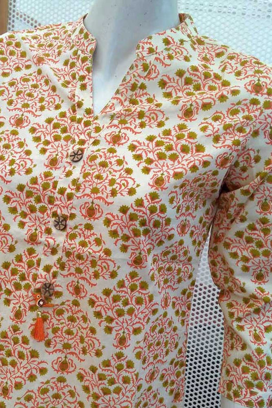 Elegant Block Print Cotton Medium Length Kurta - Size -38
