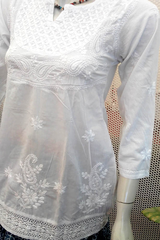 Elegant Cotton Short Kurta with Chikankari work - s- 32
