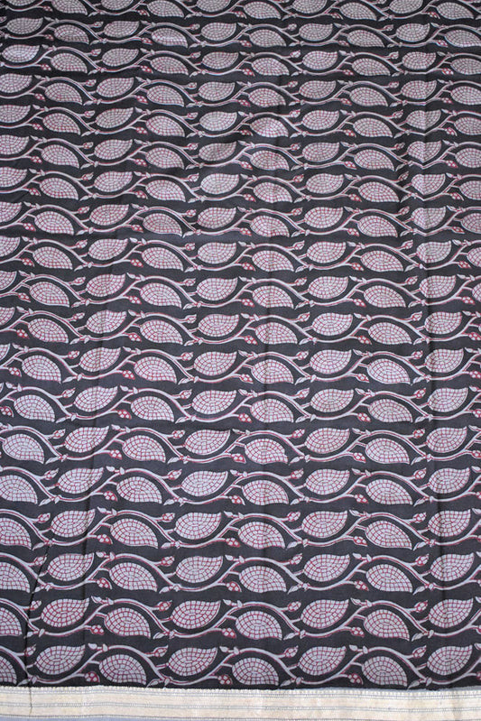 Bagh Hand Block Printed unstitched 3 pcs Handwoven Maheshwari suit fabric with Zari borders & Lagdi ( zari palla )