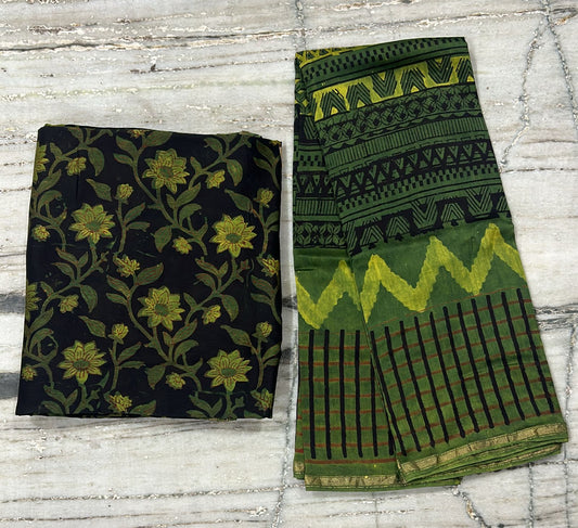 Beautiful Vanaspati Ajrakh Hand Block Printed Maheshwari Silk Cotton set