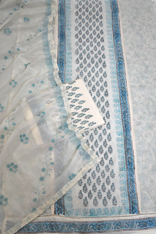 Beautiful Pure Cotton suit with Hand block printes & Embroidered cotton dupatta