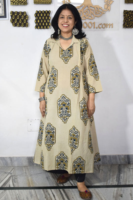 Designer Hand Block Printed Ajrakh cotton Kurta / Dress - Size 38 to 46 ( all sizes)