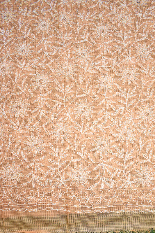 Hand Embroidered Chikankari Tepchi work Kota Doria fabric - (2.8 mtrs )