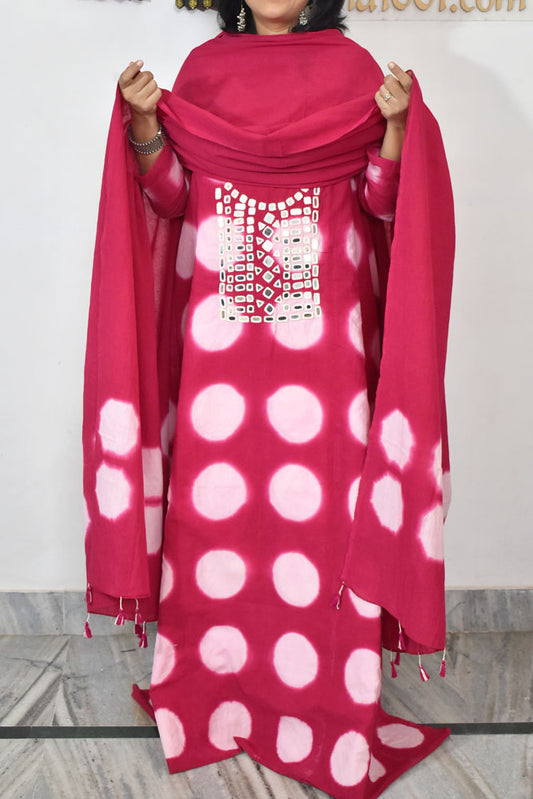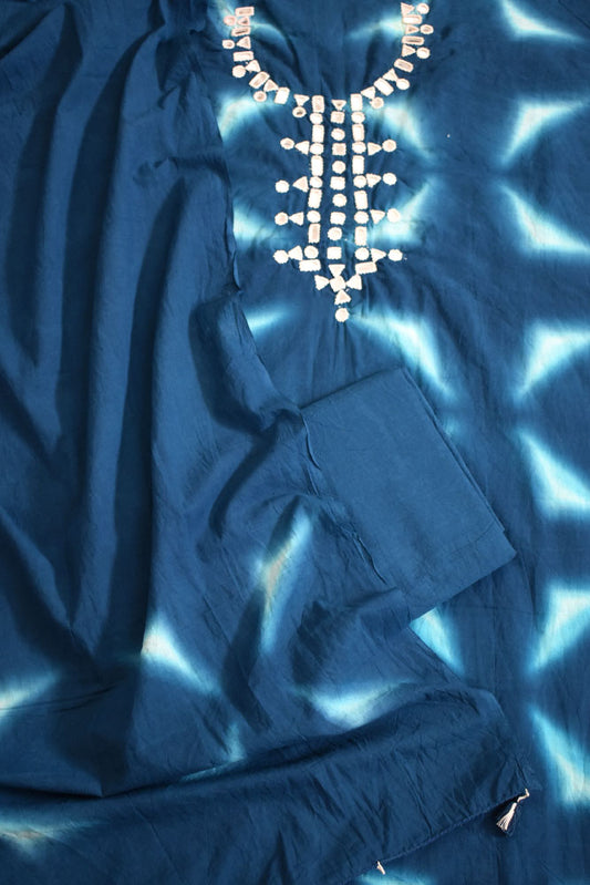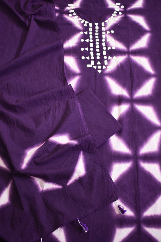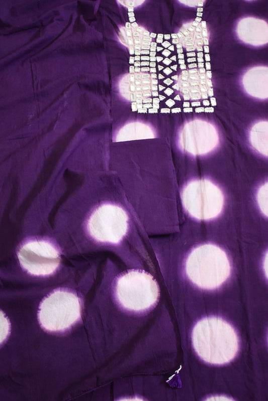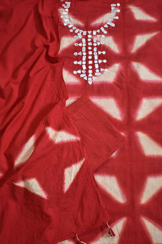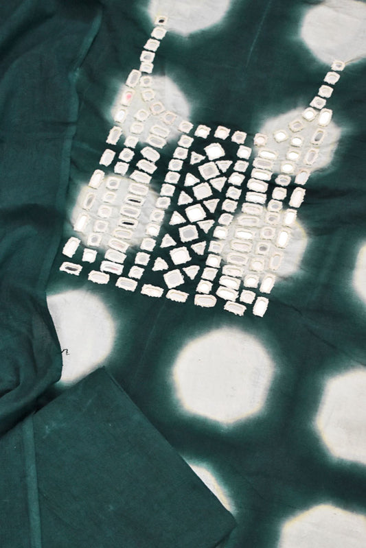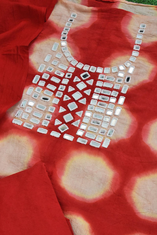 Tie & Dye Clamp Dyed cotton Unstitched Suit with Kutch Mirror work