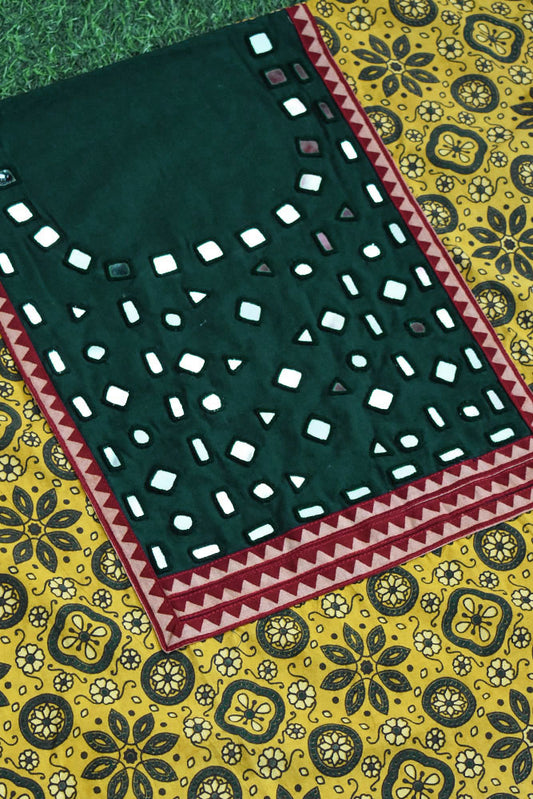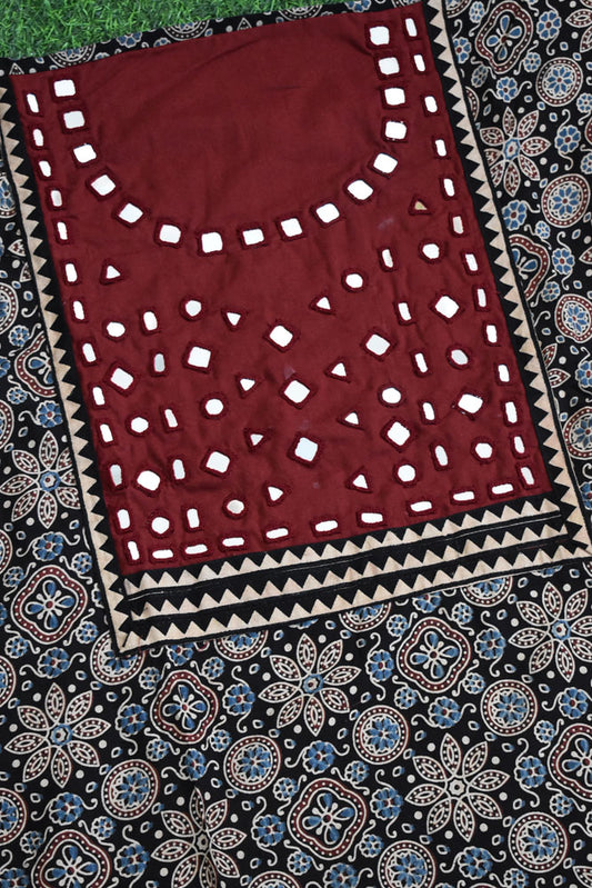 Designer Ajrakh Cotton Kurta Fabric with Kutch Mirror Work patch